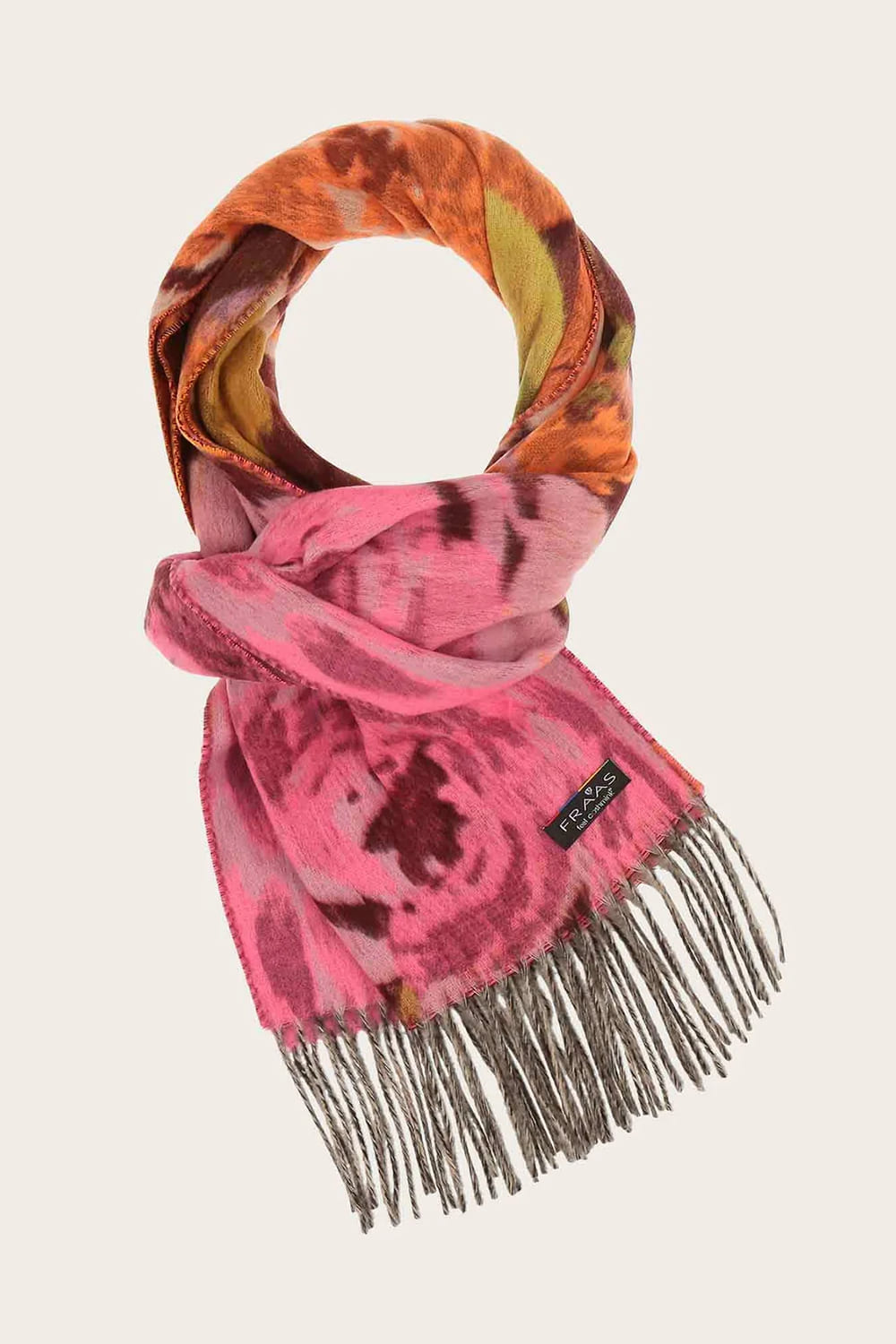 Tillverkad i Tyskland exklusivt för FRAAS. Cashmink-garn är 20 % finare än kashmir, vilket gör den ännu mjukare mot huden, behagligt värmande och även allergivänlig och vattenavvisande. Borstad till perfektion. Hållbarhet och ansvar är något Fraas tagit till sig och det går som en grön tråd genom deras företag. Från och med hösten 2021 är all FRAAS Cashmink®-produktion en CO2-hjälte och kompenserar de små, men ändå oundvikliga, utsläppen från alla Cashmink®-produkter genom ett internationellt klimatskyddsprojekt. Alla Cashmink®-produkter är certifierade enligt ÖKO-Tex Standard 100, allergivänliga, vattenavvisande och hållbart producerade enligt de högsta kvalitetsstandarderna i deras tyska fabrik. Halsdukar är FRAAS värld, deras tradition, deras passion och deras arv, sedan 1880.