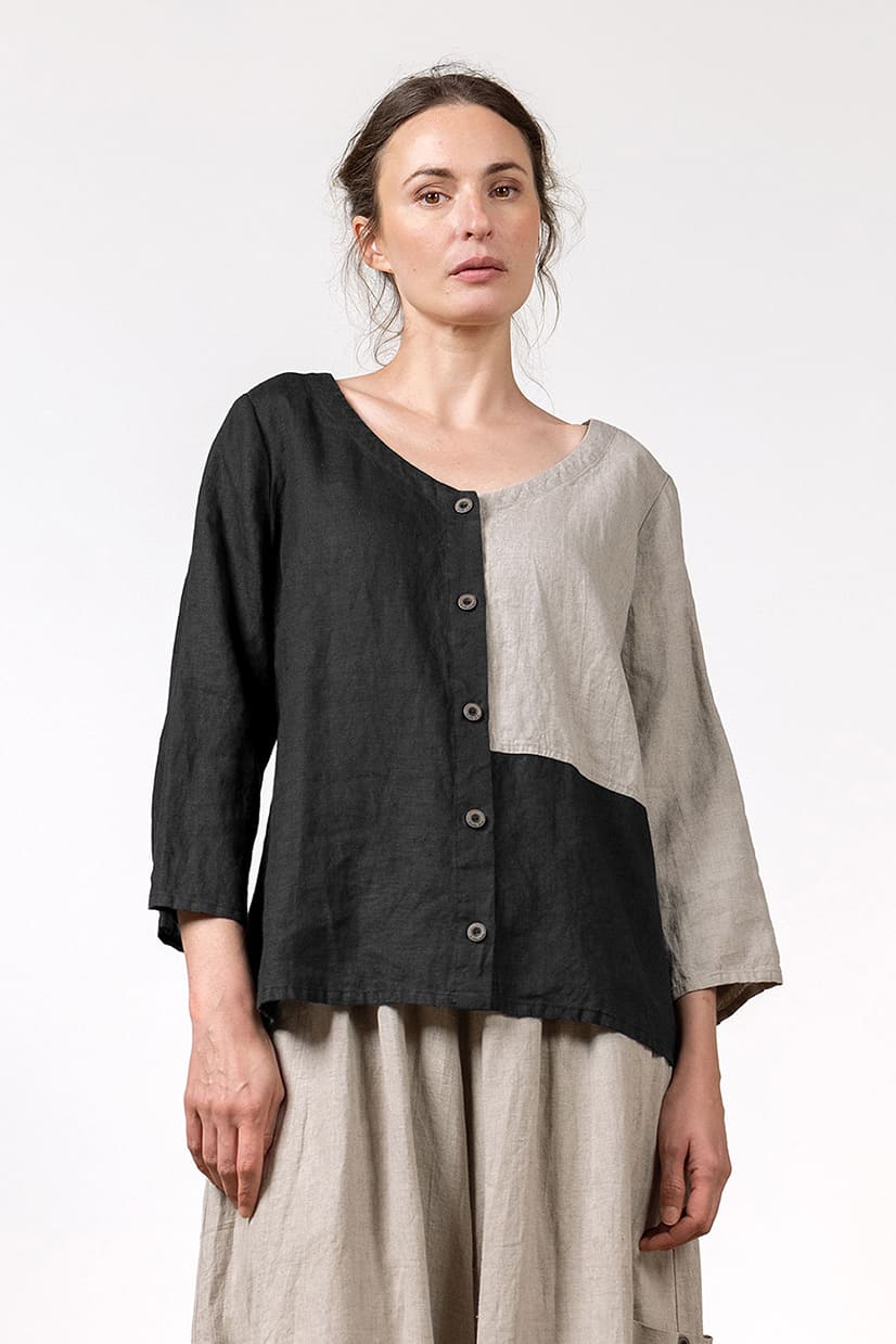 TRANA Blus i lin, Black/Natural