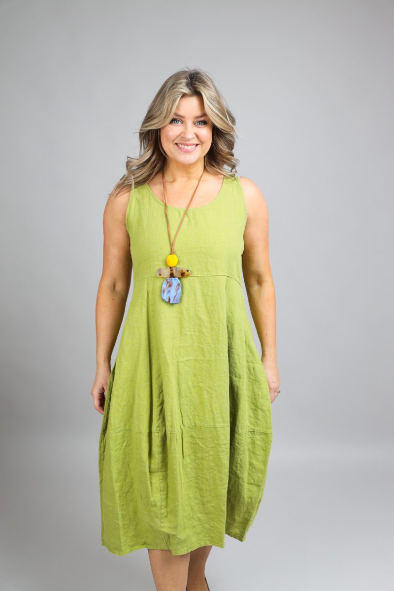 Ballongklänning i lin, Olive