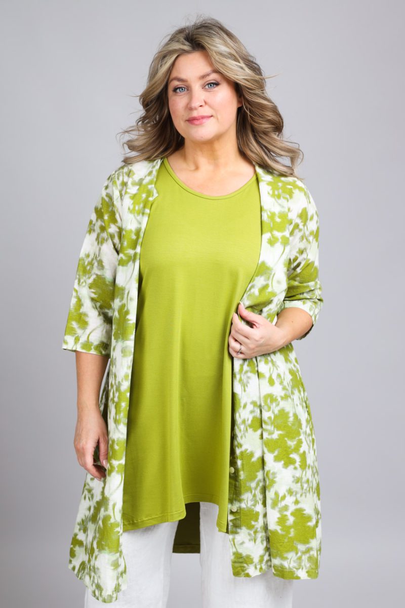 Långt linne i bambutrikå, Olive